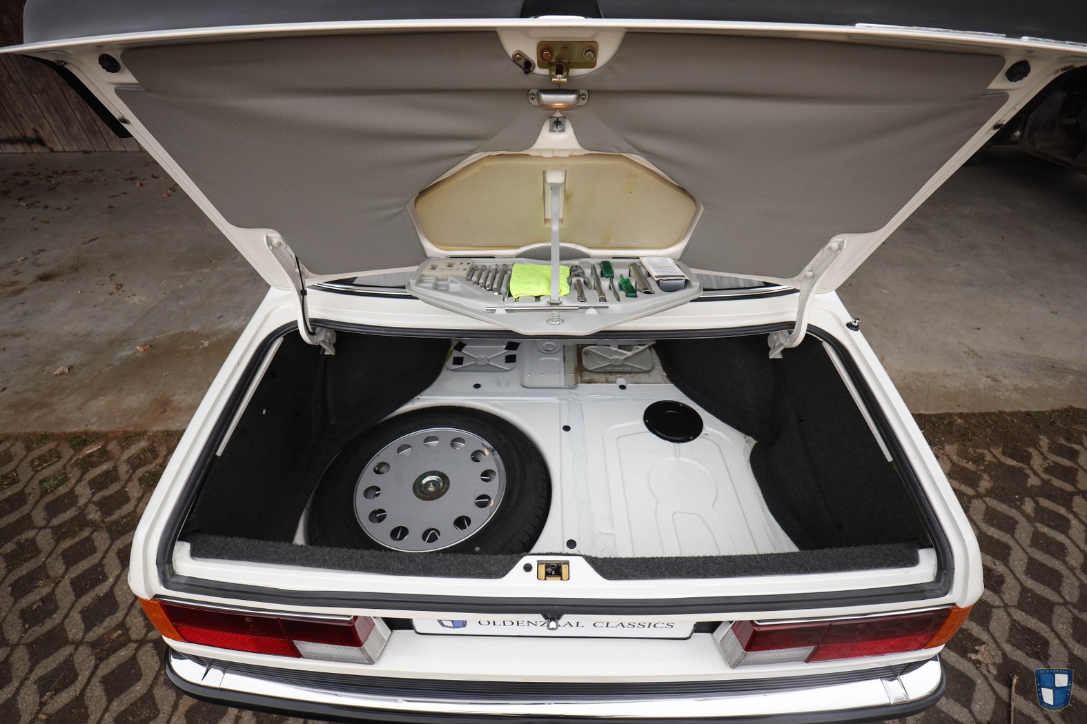 The interior is all original and the best E24 interior i’ve encountered. The beautiful sportseats and the most supple, lovely Buffalo leather – a very expensive option at the time. Ofcourse a crack-free dashboard, original centerconsole and doorpanels. The M-Tech steering wheel is great to hold and to look at, the onboard computer is a cool 80’s gadget and the cruise control works as should. The trunk of the car is clean and original, the mat is present and the set of tools is complete.
