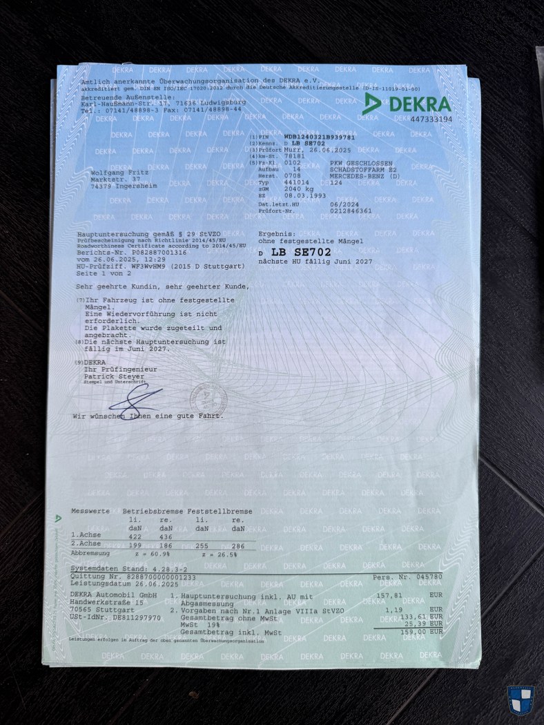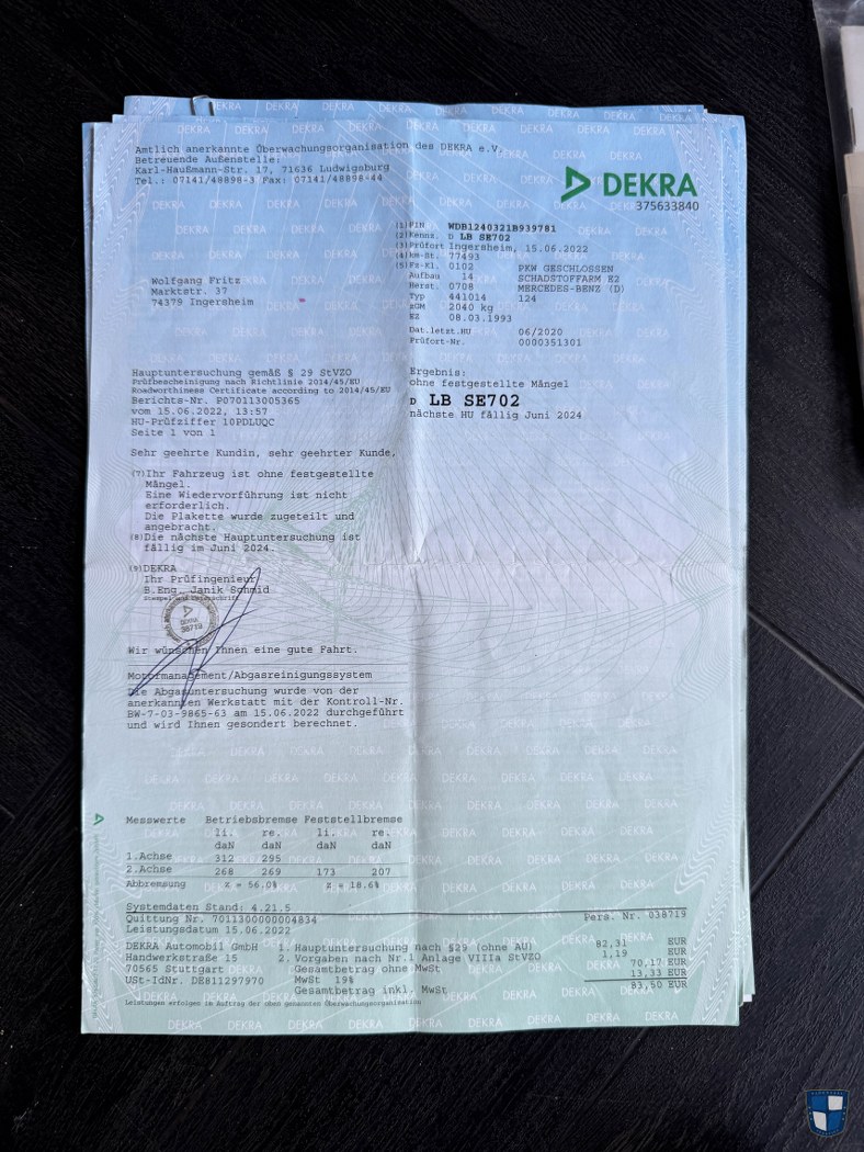 I feel the W124 looks best in this shape, with the original grille and the orange blinkers – as Mr. Sacco’s team meant it. This very car was ordered and used by Mr. Fritz from Ingersheim, Stuttgart area. He used it from March of 1993 up to 2025 and for just 79.000 kilometers. He ordered his W124 in a fantastic configuration, as a he must have been proud of what cars they built 40 minutes away.