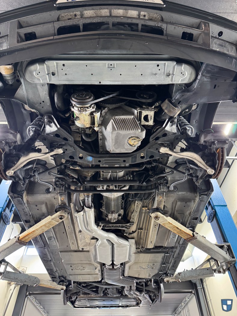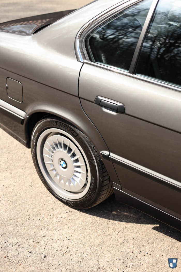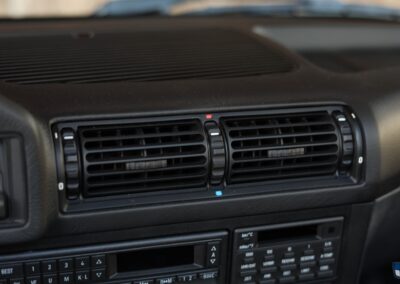 No dents, no scratches, no rust. The undercarriage is very clean and shows its factory yellow-ish wax coating. The interior is excellent. The best E34 leather interior i’ve seen. Nothing has faded, no scuffs and the most supple buffalo leather that i’ve felt. All the switchgear feels tight. Factory texture on steering wheel and shifter. Really speaks its low kilometers.