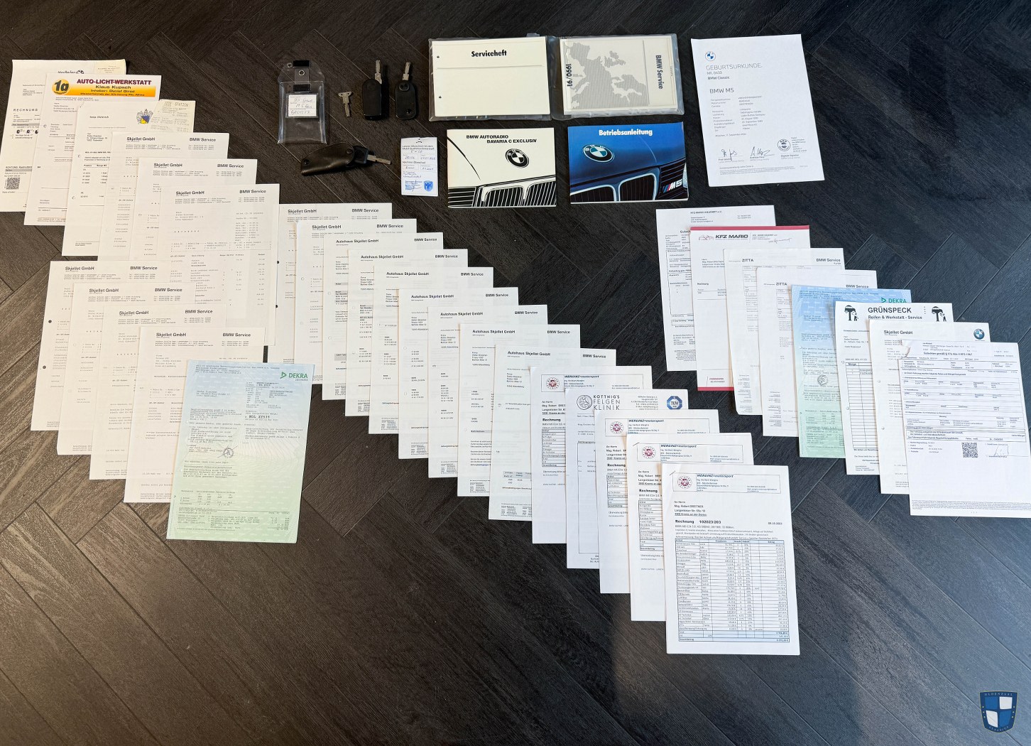 Just 39.182 original and documented kilometers. It comes with the service book, dealer stamps and invoices. Documented from A to Z. Both the 2nd and the last owner have invested seriously in keeping this M5 driving the way it should. Lots of invoices present documenting serious work. The car comes with the original set of 4 keys.